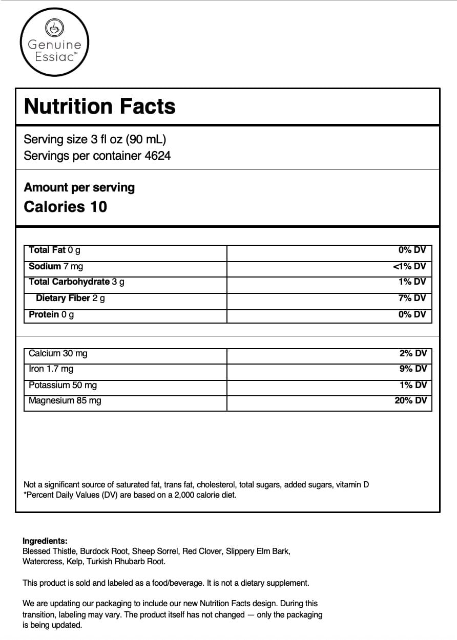- WHAT YOU'RE GETTING: 25 Thermal-Sealed and Labeled 1 lb. polybags of organic Essiac blended herbs. Eight herb Rene Caisse Essiac formula that includes the sheep sorrel root. This product is an herbal tea intended to be ingested as a beverage (not a dietary supplement). See our Nutrition Facts. Comes with complete brewing instructions. Each bag costs $29.95 and makes 4 gallons of Essiac tea.